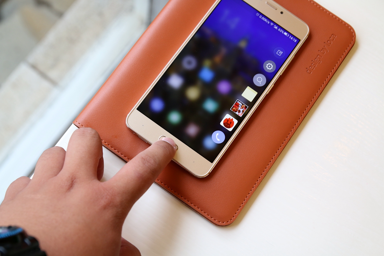 S6 Pro采用了正面指纹识别,相比背部指纹识别而言我更青睐正面指纹识别,这倒不是说背部指纹识别就不好用,只是说将指纹识别放在背部的话会对手机外观产生较强撕裂感。细心观察能够发现S6 Pro正面的Home键是高于屏幕面板的,按键两侧各放置了一个虚似按键,为了不破坏整体美感虚似按键和面板一个颜色,不细看还真看不出来。